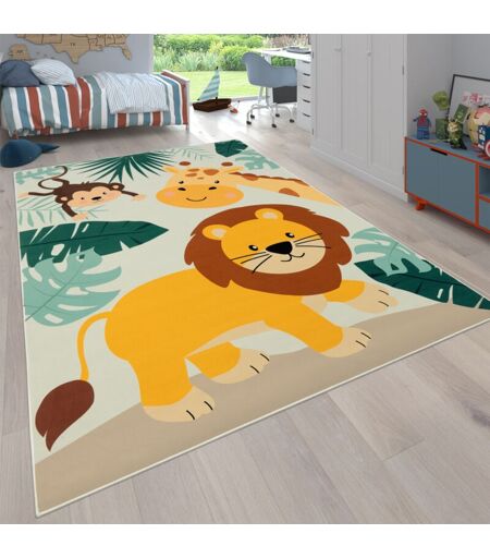 Paco Home - Tapis Chambre Enfant Bebe Fille Garcon Zoo Rue Antidérapant Beige Bleu Vert 200 cm rond