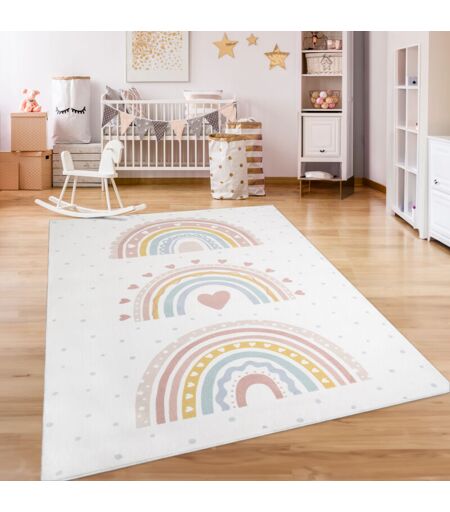 Paco Home - Tapis Chambre Enfant Bebe Fille Garcon Antidérapant Arc-en-ciel Coeur Pois 120 cm rond, Rose 2