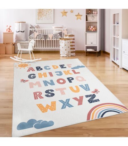 ; Une collection qui fait briller les yeux des enfants. Déclinés dans de nombreux coloris magnifiques, ces tapis sont pourtant si doux et discrets qu’ils s’accorderont à tous les styles d'intérieur. Ornés de superbes motifs d’arc-en-ciel, de cœurs de petits et grands formats, de couronnes, de jolis papillons ou de motifs météorologiques, ils font preuve de style tout en assurant un environnement gai et adapté aux enfants. Les plus studieux apprécieront également les tapis alphabet. La coordination parfaite des différents éléments et l’interaction des couleurs ne sont pas trop stimulantes pour les enfants visuellement, mais évitent tout ennui. Cette collection très esthétique apporte une agréable sensation de bien-être. Ces tapis à poils ras veloutés donnent envie de se pelotonner et leur certification selon les critères stricts du label STANDARD 100 by OEKO-TEX® garantit une grande douceur pour la peau délicate des enfants. Et pour compléter cet ensemble zéro souci, le fil en 100;% ...