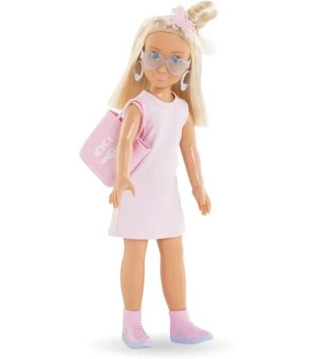 Le coffret Valentine Shopping est compos? de Valentine, une poup?e mannequin de 28 cm, et de 6 accessoires.. Valentine a un joli visage naturel aux traits fins qui sent bon la vanille. Ses yeux sont peints et elle poss?de des cheveux blonds mi-longs. Elle porte 1 pantalon bleu, 1 T-Shirt manches longues imprim?, 1 paire de bottines amovibles et 1 paire de boucles d'oreille amovibles.. Comme toutes les jeunes adolescentes de son ?ge, Valentine adore faire du shopping. Elle vient de recevoir 1 colis, en l'ouvrant elle va d?couvrir les 6 accessoires surprises qu'il renferme : 1 robe, 1 sac ? main, 1 paire de lunettes de soleil et 3 pinces ? cheveux.. Valentine a un corps r?aliste de jeune adolescente. Elle tient assise et debout toute seule.. Les Corolle Girls sont d?clin?es en plusieurs mod?les et disposent de coffrets dressing pour encore plus de jeux !. D?s 4 ans.. Corolle Girls, mes meilleures amies ...