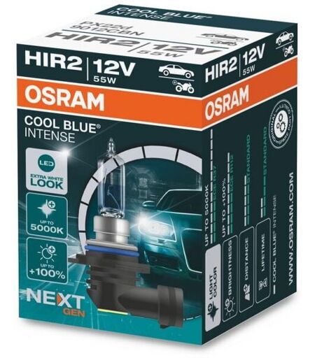 OSRAM COOL BLUE INTENSE HIR2, +100% plus lumineux, jusqu'à 5000K, lampe halogène, look LED, étui (1 lampe) Look LED : lumière extra blanche pour un look LED élégant Jusqu'à 5000 Kelvin - Contraste élevé et lumière blanche brillante pour un look plus élégant et moderne sur la route Jusqu'à 100 % de lumière en plus (H1, H4, H7, H11, HB3, HB4, HIR2) : plus de lumière vous permet de voir plus loin et de réagir plus rapidement Look unique, moderne et personnalisé avec une lumière extra blanche Pour une conduite confortable et moins fatigante que les lampes halogènes standard Découvrez COOL BLUE INTENSE - des lampes halogènes high-tech, presque dans la ligue des lampes LED. Avec sa lumière extra blanche puissante et brillante jusqu'à 5 000 kelvins, dont le faisceau froid la fait ressembler à une lampe à LED, elle en donne pour leur argent aux vrais fans de design. La lampe automobile fournit également une lumière contrastée semblable à la lumière du jour, ce qui la rend plus agréable pour ...