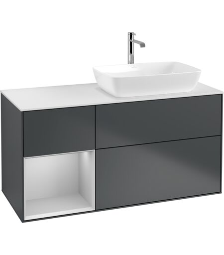 Villeroy und Boch Villeroy et Boch Finion Villeroy et Boch G801GJHG 120cm, plaque de finition blanc mat, Emotion, étagères laqué gris clair mat, Midnight Blue Matt Lacquer