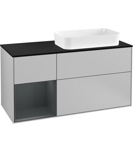 Villeroy und Boch Villeroy et Boch Finion Villeroy et Boch G272HGGJ 120cm, plaque de finition noir mat, Emotion, étagère gauche Midnight Blue Matt Lacquer , gris clair mat