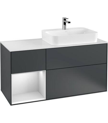 Villeroy und Boch Villeroy et Boch Finion Villeroy et Boch G391MTHG 120cm, plaque de finition blanc mat, Emotion, étagère gauche laqué blanc mat, Midnight Blue Matt Lacquer