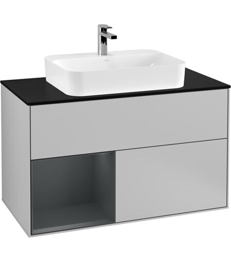 Villeroy und Boch Villeroy et Boch Finion Villeroy et Boch G362HGGJ 100cm, plaque de finition noir mat, Emotion, étagère gauche Midnight Blue Matt Lacquer , gris clair mat