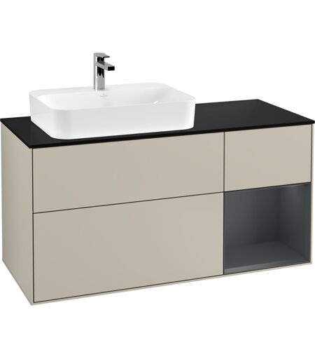Villeroy und Boch Villeroy et Boch Finion Villeroy et Boch G402HGHH 120cm, plaque de finition noir mat, Emotion, étagère à droite Midnight Blue Matt Lacquer , Sand Matt Lacquer