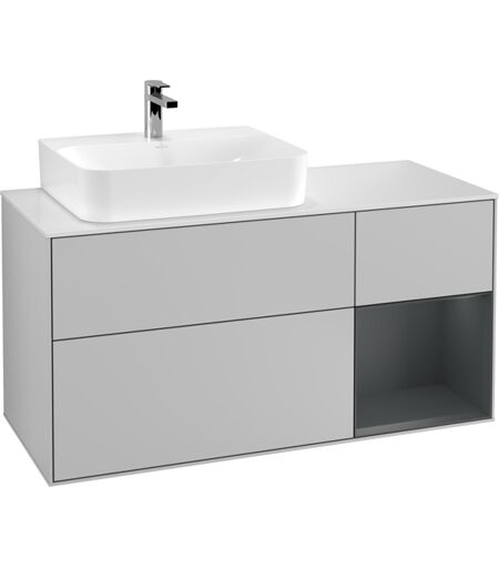 Villeroy und Boch Villeroy et Boch Finion Villeroy et Boch G151HGGJ 120cm, plaque de finition blanc mat, Emotion, étagère à gauche Midnight Blue Matt Lacquer , gris clair mat
