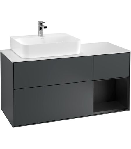 Villeroy und Boch Villeroy et Boch Finion Villeroy et Boch G151PDHG 120cm, plaque de recouvrement blanc mat, Emotion, étagère gauche laqué noir mat, Midnight Blue Matt Lacquer