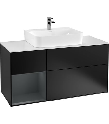 Villeroy und Boch Villeroy et Boch Finion Villeroy et Boch G161HGPD 120cm, plaque de recouvrement blanc mat, Emotion, étagère gauche Midnight Blue Matt Lacquer , laqué noir mat