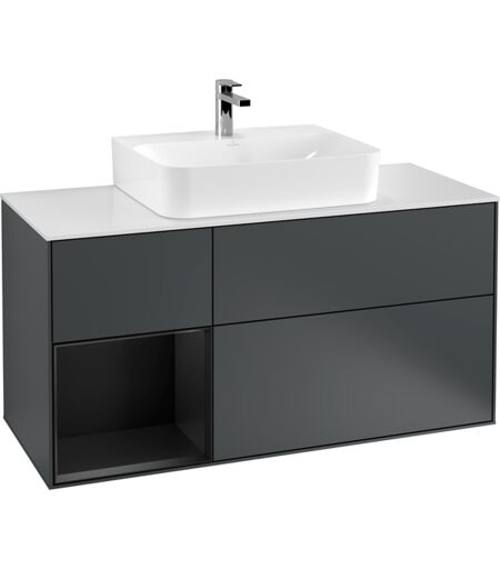 Villeroy und Boch Villeroy et Boch Finion Villeroy et Boch G161PDHG 120cm, plaque de recouvrement blanc mat, Emotion, étagère gauche laqué noir mat, Midnight Blue Matt Lacquer