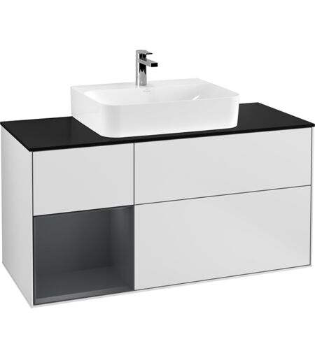 Villeroy und Boch Villeroy et Boch Finion Villeroy et Boch G162HGMT 120cm, plaque de finition noir mat, Emotion, étagère à gauche Midnight Blue Matt Lacquer , laqué blanc mat