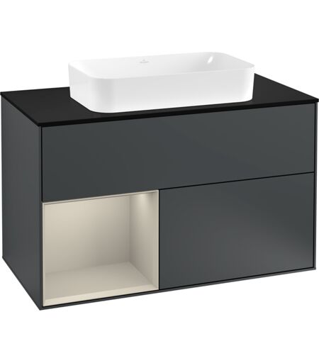 Villeroy und Boch Villeroy et Boch Finion Villeroy et Boch G242HHHG 100cm, plaque de finition noir mat, Emotion, étagère à gauche Sand Matt Lacquer , Midnight Blue Matt Lacquer