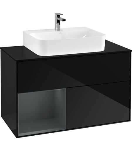 Villeroy und Boch Villeroy et Boch Finion Villeroy et Boch G112HGPH 100cm, plaque de finition noir mat, Emotion, étagère gauche Midnight Blue Matt Lacquer , Glossy Black Lacquer