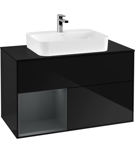 Villeroy und Boch Villeroy et Boch Finion Villeroy et Boch G362HGPH 100cm, plaque de finition noir mat, Emotion, étagère gauche Midnight Blue Matt Lacquer , Glossy Black Lacquer