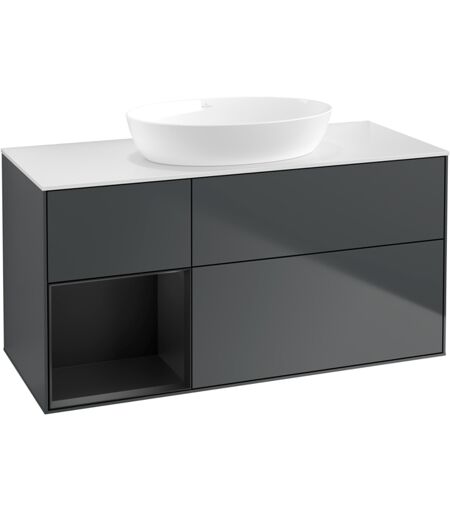 Villeroy und Boch Villeroy et Boch Finion Villeroy et Boch GA61PDHG 120cm, plaque de recouvrement blanc mat, Emotion, étagères laqué noir mat, Midnight Blue Matt Lacquer