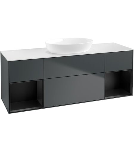 Villeroy und Boch Villeroy et Boch Finion Villeroy et Boch GD01PDHG 120cm, plaque de recouvrement blanc mat, Emotion, étagères laqué noir mat, Midnight Blue Matt Lacquer