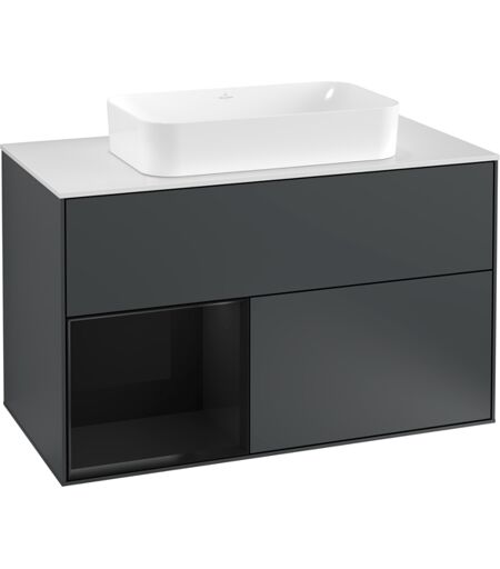 Villeroy und Boch Villeroy et Boch Finion Villeroy et Boch G241PHHG 100cm, plaque de finition blanc mat, Emotion, étagère à gauche Glossy Black Lacquer , Midnight Blue Matt Lacquer