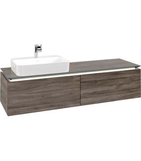 Villeroy und Boch Legato Villeroy et Boch vasque B763L0RK 160x38x50cm, meuble sous-vasque gauche, avec éclairage LED, Stone Oak