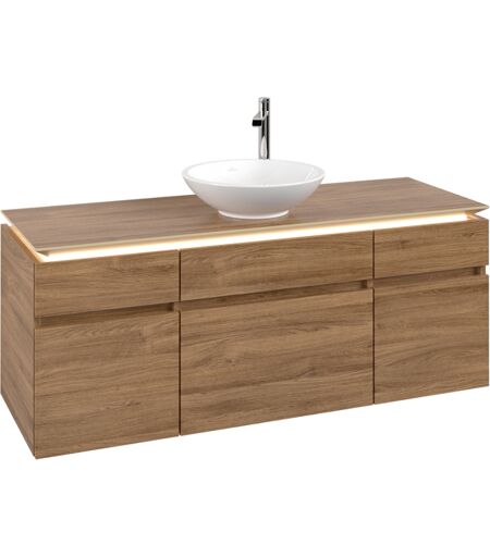 Villeroy und Boch Legato Villeroy et Boch vasque B586L0RH 140x55x50cm, meuble sous-vasque central, avec éclairage, Kansas Oak