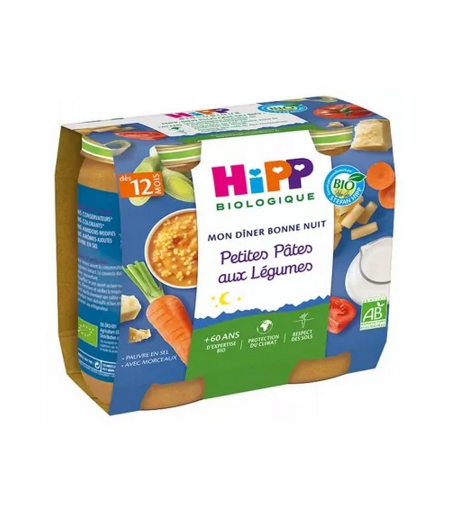 Parapharmacie > Bébé & Maman > Alimentation bébé > Repas bébé HiPP Mon Dîner Bonne Nuit Petites Pâtes aux Légumes dès 12 Mois Bio Pots x 2