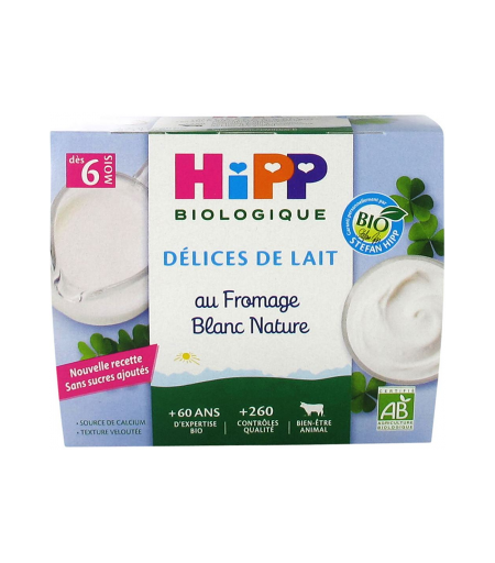 Parapharmacie > Bébé & Maman > Alimentation bébé > Repas bébé > Petits pots bébé HiPP Délices de Lait au Fromage Blanc Nature Sucré dès 6 Mois Bio 4 Pots - Petits pots bébé - Pharmacie en ligne LaSante.net