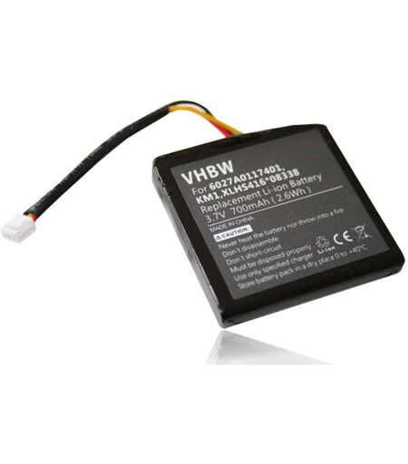 vhbw - the clever way - Batterie de rechange de haute qualité avec une grande autonomie et compatible avec votre système de navigation GPS (vous trouverez ci-dessous tous les modèles correspondants) - La batterie peut être chargée avec le chargeur standard ou un chargeur compatible - Nos batteries répondent à toutes les normes de sécurité actuelles CONTENU DE LIVRAISON : - 1x batterie DONNÉES TECHNIQUES : - Technologie : Li-ion - sans effet mémoire - Capacité : 700 mAh - Tension : 3,7 V - Énergie nominale : 2,59 Wh - Nombre de cellules : 1 - Poids : 16 g - Dimensions (L x l x H) : 3,6 x 3,6 x 0,6 cm COMPATIBLE AVEC TomTom Via 120 Europe Traffic, Via 125, Via 125 Europe Traffic Pour garantir la compatibilité, veuillez vérifier si votre batterie utilisée actuellement est répertoriée. REMPLACEMENT POUR : - 6027A0117401, KM1, XLHS416*08338 vhbw - Accessoires et pièces de rechange de haute qualité pour prolonger la durée de vie de vos appareils électriques. ...