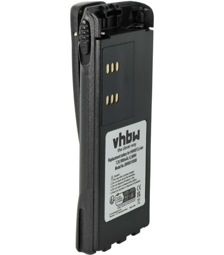 vhbw - the clever way - Batterie de rechange de haute qualité avec une grande autonomie et compatible avec votre radio talkie-walkie (vous trouverez ci-dessous tous les modèles correspondants) - Du fait de cette grande capacité, un autre boîtier de protection est nécessaire - celui-ci est bien entendu inclus dans la livraison - Nos batteries répondent à toutes les normes de sécurité actuelles CONTENU DE LIVRAISON : - 1x batterie avec couvercle de fermeture (couleur : noir) DONNÉES TECHNIQUES : - Technologie : Li-ion - sans effet mémoire - Capacité : 1800 mAh - Tension : 7,2 V - Énergie nominale : 12,96 Wh - Couleur de la couvercle : noir COMPATIBLE AVEC : - Motorola GP340 - Motorola GP360 - Motorola GP380 - Motorola GP540 - Motorola GP580 - Motorola GP640 - Motorola GP680 Pour garantir la compatibilité, veuillez vérifier si votre batterie utilisée actuellement est répertoriée. REMPLACEMENT POUR : - Motorola HMNN4151, HMNN4154, HMNN4158, HMNN4159, HNN4001, HNN4003, HNN9008, HNN9008A, ...