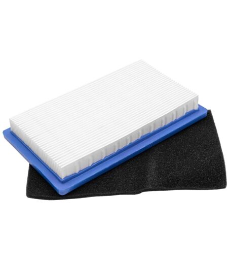 vhbw - the clever way Lot de filtres de haute qualité pour votre tondeuse à gazon Notre lot de filtres avec 2 pièces de la marque vhbw vous permet de changer rapidement et facilement vos filtres afin de garantir une haute performance de filtration de votre outil de jardinage. Le set se compose de : - 1x PRÉFILTRE - Capture les particules grossières de saletés, avant que l'air ne soit dirigé dans le filtre principal - Filtre également les particules de poussière les plus fines - Matériau : mousse - Couleur : noir - Longueur : 19 cm - Largeur : 11,2 cm - Hauteur : 0,5 cm - 1x FILTRE À AIR - Filtre l'air d'admission, améliore le passage d'air et assure ainsi une bonne combustion et une acoustique optimale du moteur (amortissement du bruit d'admission) - Couleur : blanc avec cadre bleu - Hauteur : 2,6 cm - Longueur : 18,6 cm - Largeur : 11,1 cm COMPATIBLE AVEC : - John Deere X300R avec moteur FH491V REMPLACEMENT POUR : - John Deere MIU10998, MIU10999 ...