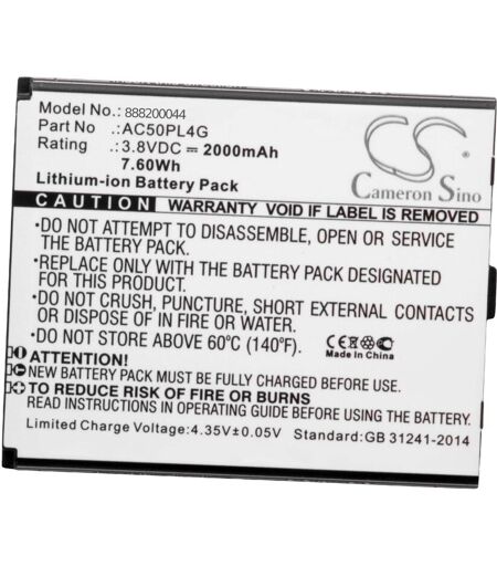 vhbw - the clever way - Batterie rechargeable de haute qualité avec une grande autonomie et compatible avec smartphone (tous les modèles compatibles se trouvent ci-dessous) - Nos batteries répondent à toutes les normes de sécurité actuelles CONTENU DE LIVRAISON : - 1x batterie DONNÉES TECHNIQUES : - Technologie : Li-ion - pas d'effet mémoire - Capacité : 2000 mAh - Tension : 3,8 V - Énergie nominale : 7,6 Wh Pour garantir la compatibilité, veuillez vérifier si votre batterie utilisée actuellement est répertoriée. REMPLACEMENT POUR : - Archos AC50PL4G vhbw - Accessoires et pièces de rechange de haute qualité. Pour une longue durée de vie de vos appareils électriques. ...
