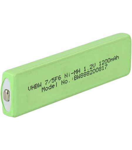 vhbw - the clever way - Cellule de batterie de haute qualité et compatible avec une grande autonomie et compatible avec votre lecteur de minidisques ou baladeur de cd - Nos batteries répondent à toutes les normes de sécurité actuelles CONTENU DE LIVRAISON : - 1x cellule de batterie DONNÉES TECHNIQUES : - Technologie : NiMH - Capacité : 1100 mAh - Tension : 1,2 V - Énergie nominale : 1,32 Wh - Couleur : vert - Poids : 26 g - Température de chargement : 0°C - 60°C - Température de décharge : -20 - 60°C - Forme de la batterie : cellule prismatique - Pôle + : augmente (boûton supérieur) - Type : 7/5F6 COMPATIBLE AVEC Sanyo KF- A650 ...