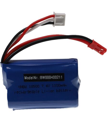 vhbw - the clever way - Batterie de rechange de haute qualité avec une grande autonomie et compatible avec diverses véhicules radio-commandés comme voitures de course, hélicoptères, avions et réduits de bateaux - Nos batteries répondent à toutes les normes de sécurité actuelles CONTENU DE LIVRAISON : - 1x batterie DONNÉES TECHNIQUES : - Technologie : Li-ion - sans effet mémoire - Capacité : 1100 mAh - Tension : 7,4 V - Énergie nominale : 8,14 Wh - Nombre de cellules : 2 - Poids : 75 g - Configuration des cellules : 2S1P - Dimensions (L x l x H): 5,5 x 3,7 x 1,9 cm - Taux de décharge : 15 c - Fiche de connexion : BEC - Fiche de balance : XH 2.54 (3P) - Courant de décharge de courte durée (taux de décharge en salves) : 15 C COMPATIBLE AVEC : - MJX T10 - MJX T11 - MJX T34 vhbw - Accessoires et pièces de rechange de haute qualité pour prolonger la durée de vie de vos appareils électriques. ...