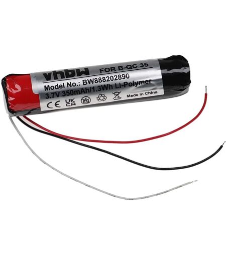 vhbw - the clever way - Batterie de rechange de haute qualité avec une grande autonomie et compatible avec votre casque audi ou écouteurs sans fil (vous trouverez ci-dessous tous les modèles correspondants) - La batterie peut être chargée avec le chargeur standard ou un chargeur compatible - Nos batteries répondent à toutes les normes de sécurité actuelles CONTENU DE LIVRAISON : - 1x batterie DONNÉES TECHNIQUES : - Technologie : Li-polymère - Capacité : 350 mAh - Tension : 3,7 V - Énergie nominale : 1,3 Wh - Nombre de cellules : 1 COMPATIBLE AVEC : - Bose QC35 - Bose QC35 II - Bose QC 45 Pour garantir la compatibilité, veuillez vérifier si votre batterie utilisée actuellement est répertoriée. REMPLACEMENT POUR : - Bose AHB110520CPS vhbw - Accessoires et pièces de rechange de haute qualité pour prolonger la durée de vie de vos appareils électriques. ...