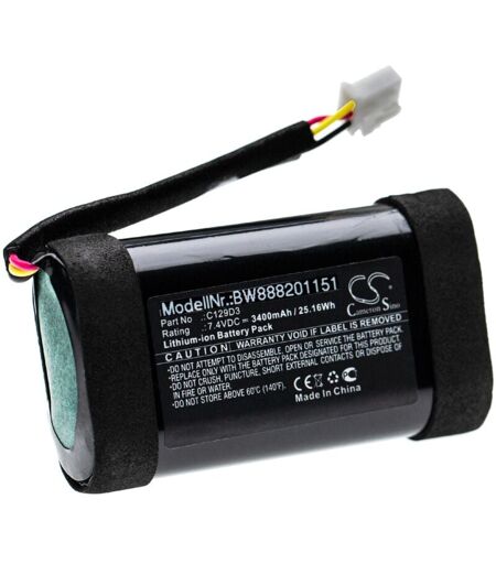 vhbw - the clever way - Batterie de rechange de haute qualité avec une grande autonomie et compatible avec votre enceinte haut-parleur (vous trouverez ci-dessous tous les modèles correspondants) - Nos batteries répondent à toutes les normes de sécurité actuelles CONTENU DE LIVRAISON : - 1x batterie DONNÉES TECHNIQUES : - Technologie : Li-ion - sans effet mémoire - Capacité : 3400 mAh - Tension : 7,4 V - Énergie nominale : 25,16 Wh - Hauteur : environ 1,8 mm - Nombre de cellules : 2 COMPATIBLE AVEC : - Bang & Olufsen BeoPlay A1 Pour garantir la compatibilité, veuillez vérifier si votre batterie utilisée actuellement est répertoriée. REMPLACEMENT POUR : - Bang & Olufsen C129D3 vhbw - Accessoires et pièces de rechange de haute qualité pour prolonger la durée de vie de vos appareils électriques. ...