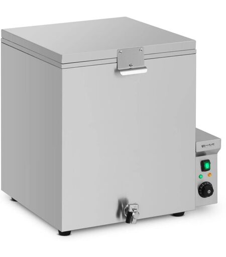 ⭐⭐⭐⭐⭐ Échaudez la volaille avant de la plumer avec une cuve de trempage électrique de marques Wiesenfield ✅ Modèle: WIE-CS-120 ✅ Article: 10280047 ⬇️ Caractéristiques principales Puissance – échaudage simultané de 7-8 poulets en 70-90 s Durabilité – boitier solide et facile d'entretien en inox Volume – grande contenance de 120 l Simplicité – bouton marche/arrêt et réglages au moyen d'une grande molette allant jusqu'à 85 °C Commodité – grand panier à volaille facile à enlever ⬇️ Détails techniques Performances de l'échaudoir 7 - 8 poulets par cycle Manuel d'utilisation Oui Capacité du récipient 120 l Protection contre la surchauffe Oui Température max. de l'eau 85 °C Matériau(x) Acier inoxydable 201 Couleur(s) Argenté Dimensions [cm] 60x56x62.5 Tension [V] 230 Puissance de chauffe [W] 3000 Dimensions panier(s) [mm] 430x430x505 ⬇️ Description du produit Avant de plumer la volaille comme les poulets, les oies et les canards, il est préférable de l'échauder. Et pour ce faire, rien de ...