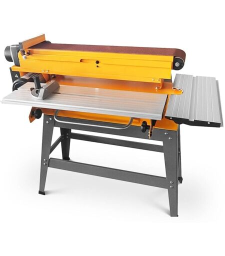 La ponceuse à bande stationnaire MSW-TDA-2300Q est équipée d'un moteur de 1 100 W (230 V) et d'une vitesse de bande de 616 m/min, idéale pour le ponçage, l'ébavurage et la finition du métal, du bois et du plastique. Le bras de ponçage pivote de 0 à 90°, vous permettant de travailler en toute flexibilité, en position verticale ou horizontale. Le grand plan de travail en aluminium (790 × 220 mm) offre un support solide pour les grandes pièces. Avec une hauteur de travail de 800 mm et une construction robuste, vous pouvez travailler à une hauteur confortable, même pendant les longues séances de ponçage. La table d'appoint (520 × 220 mm) de la ponceuse à bande métallique est idéale pour le ponçage des contours des tuyaux, des poignées ou des pièces courbes. ...