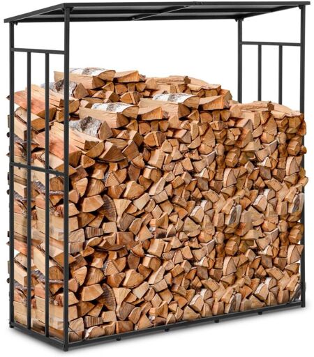 Hillvert - tagère de bois de chauffage - avec toit - 300 kg - 161 x 65 x 177 cm - acier - noir