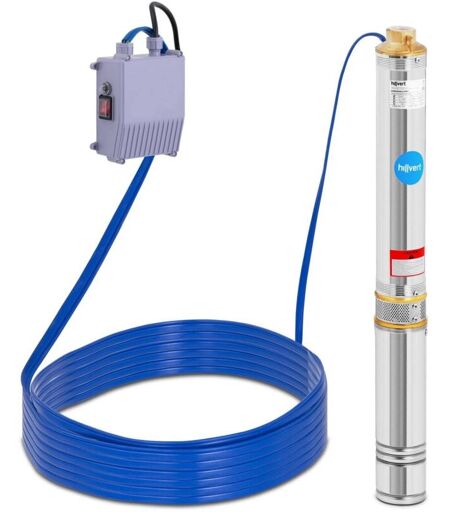 Description générale La pompe submersible Hillvert est conçue pour le pompage de l'eau propre provenant de puits, de réservoirs ou pour l'irrigation des jardins. Avec une puissance de 550 W, elle offre un débit maximal de 3000 l/h, ce qui la rend idéale pour les besoins domestiques et d'irrigation, même en cas de sécheresse prolongée. Spécifications techniques Modèle : HT-ROBSON-SP550-80 Tension : 230 V Puissance : 550 W Hauteur de refoulement maximale : 80 m Régime moteur : 2850 tr/min Débit maximum : 3000 l/h Classe d'isolation : Double isolation Classe de protection CEI : I Indice de protection : IPX8 Diamètre du raccord d'eau : 1,25" Teneur maximale en sable dans l'eau : 0,25% Température maximale de l'eau pompée : 60°C Diamètre du trou de montage : 100 mm Matériau du boîtier : Acier inoxydable Câble d'alimentation : 20 + 3 m Dimensions (LxlxH) : 85 x 9,5 x 9,5 cm Poids : 13,15 kg Dimensions d'expédition (LxlxH) : 122 x 12 x 21 cm Poids d'expédition : 15,4 kg Compatibilité et ...