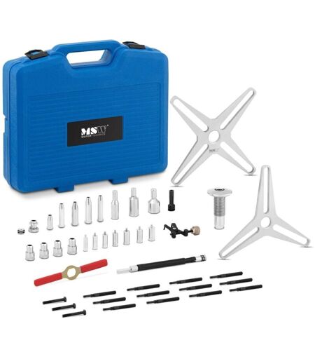 Description générale Le kit d'outils pour embrayage SAC MSW-ETT-14 est conçu pour le montage et le démontage professionnels des embrayages à compensation automatique d'usure. Composé de 38 pièces, ce set est compatible avec une large gamme de véhicules, notamment ceux des marques Audi, Volkswagen, BMW, Mercedes, Opel, Renault, et bien d'autres. Il assure un travail efficace et sans dommages grâce à ses outils robustes en acier traités contre la corrosion. Spécifications techniques Code du fabricant : 10061240 Modèle : MSW-ETT-14 Matériau : Acier/aluminium traité anti-corrosion Dimensions (LxLxH) : 46 x 41 x 10,5 cm Poids : 8,2 kg Dimensions d'expédition : 47,5 x 42,5 x 13,7 cm Poids d'expédition : 8,9 kg Mallette de transport incluse : Oui Manuel d'utilisation : Oui Compatibilité et accessoires Compatible avec les embrayages SAC à 3 et 4 trous Convient à de nombreux modèles de voitures : VW, Audi, BMW, Mercedes, Volvo, Opel, Vauxhall, Renault, etc. Inclus : Prétendeur pour embrayage à ...