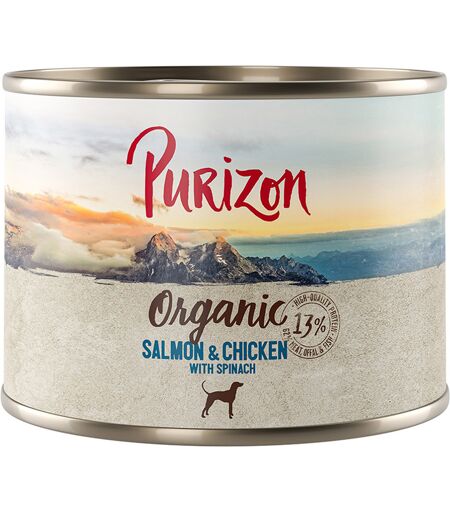 Lot Purizon Organic Bio 24 x 200 g pour chien - saumon, poulet & épinards