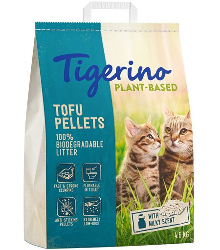 Litière Tigerino Plant-Based Tofu senteur lait pour chat - 11 L (4,6 kg)