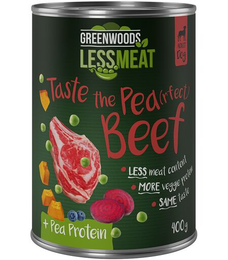 Greenwoods Less Meat petits pois 6 x 400 g pour chien - bœuf