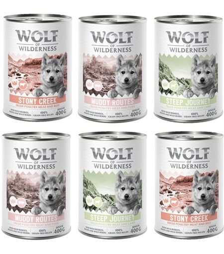 Wolf of Wilderness Junior “Expedition” 6 x 400 g pour chiot - lot mixte