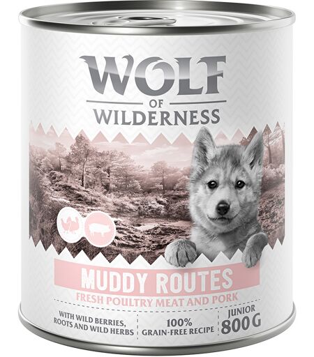 Wolf of Wilderness Junior “Expedition” 6 x 800 g pour chien - Muddy Routes - volaille, porc