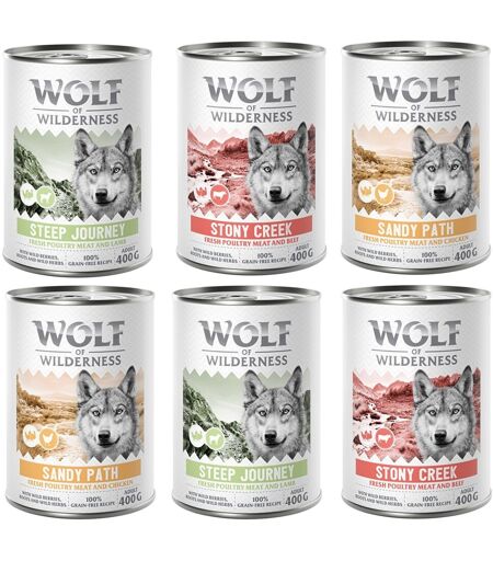 Wolf of Wilderness Adult “Expedition” 6 x 400 g pour chien - lot mixte