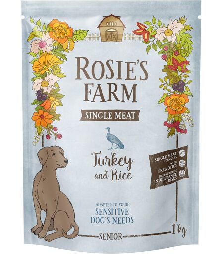 1kg Rosie's Farm Single Meat Senior dinde avec riz nourriture sèche pour chiens