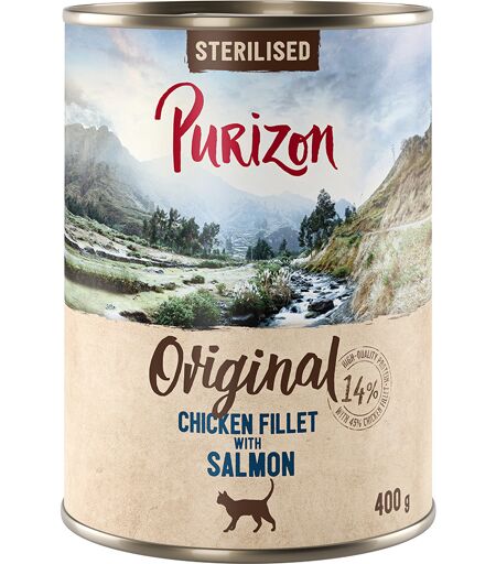 6x 400g Purizon Adult Sterilised filet de poulet avec saumon nourriture pour chats humide