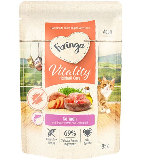 Feringa Vitality Hairball Care pour chat Anti-boules de poils au saumon 12 x 85 g