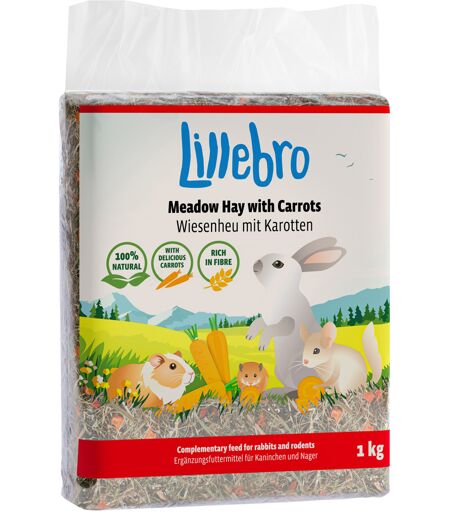 Foin de prairie Lillebro avec pomme, pissenlit ou carotte - Foin de prairie avec carotte 1 kg