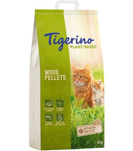 30l (8kg) Tigerino Plant-Based Bois-Pellets Litière pour chats - Parfum naturel de bois, sans parfum