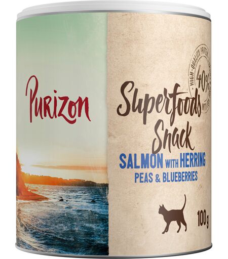 100g Superfood Saumon avec hareng, petits poiset myrtilles Purizon friandise pour chats